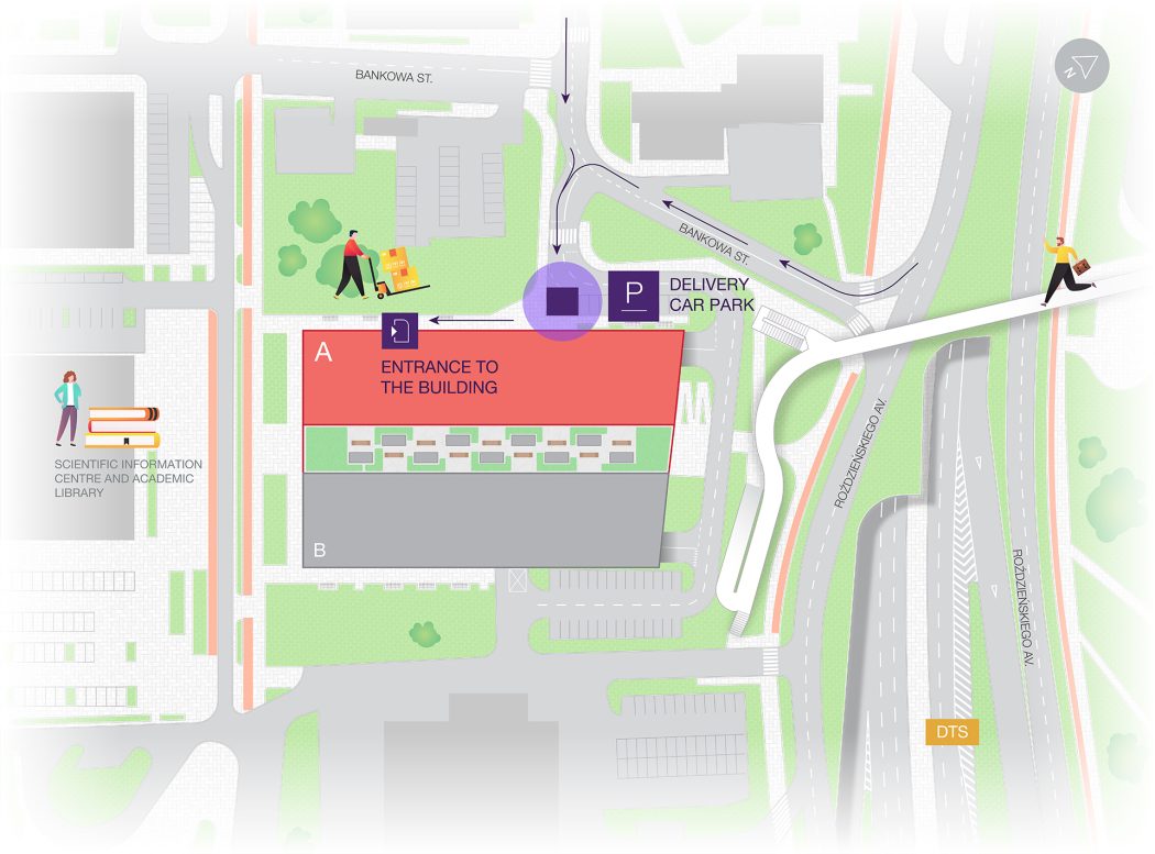 Normally, standing in a designated parking spot leads to nasty consequences. Unless you are a courier! Therefore, please inform the delivery companies you work with that their employees should leave their vehicles precisely at the designated parking spot in the surface parking area.