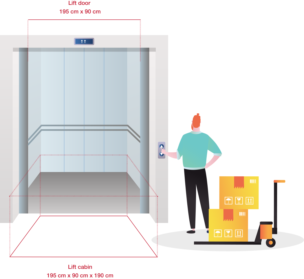 The cargo lift has a large maximum load capacity. For Silesia Star, ‘large’ means exactly 800 kg. Be sure to mention this to your delivery service.