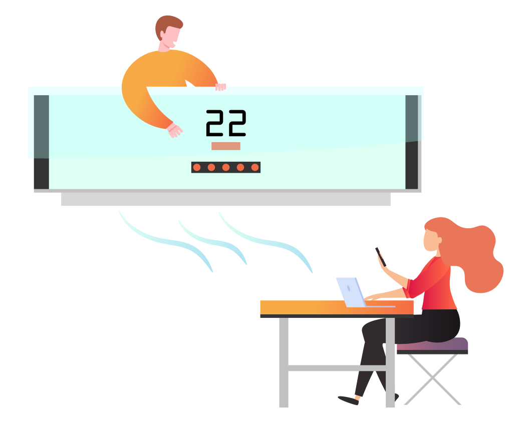 Temperaturę powietrza możesz dostosować do każdego z pomieszczeń w swoim biurze, np. w zależności od znajdujących się w danym miejscu mebli, za pomocą paneli kontrolnych. Poniżej znajduje się skrócona instrukcja ich obsługi.